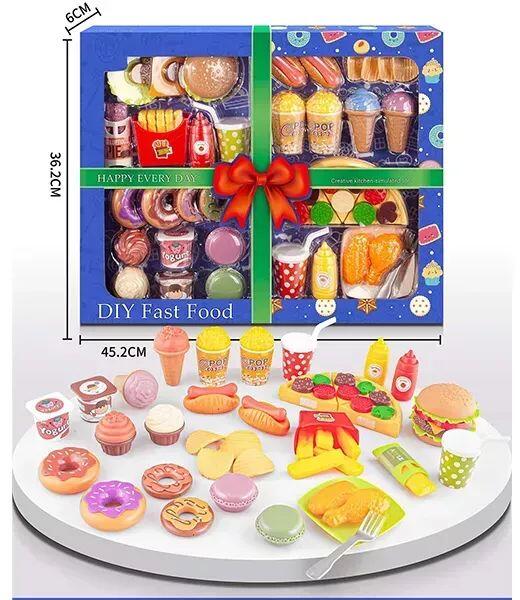 A 4 az 1-ben étel játékkészlet kreatív játékélményt nyújt a gyerekeknek, miközben fejleszti a képzelőerejüket. A termék jellemzői: 39 db különböző játékelem Tartalmazza a legnépszerűbb ételeket Színes és részletgazdag kidolgozás Környezetbarát anyagokból készült Fejleszti a finommotorikus készségeket Könnyen tárolható és hordozható a praktikus dobozbanCsomagolás mérete: 40 x 45 x 6 cm