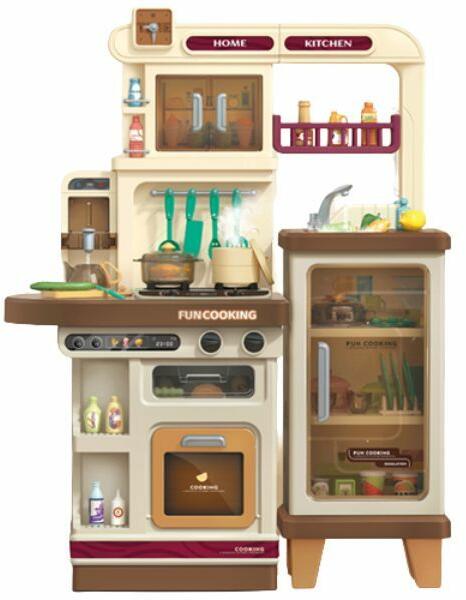 Minden apró séf álma egy jó felszerelt konyha, ebben pedig minden megtalálható, ami szükséges a legfinomabb játékételek elkészítéséhez. A konyha számos lehetőséget és szuper funkciókat kínál a gyerekeknek. Beépített elektromos moduljának köszönhetően élethű "főzős hangokat" ad ki és számos része világít is. A víz cirkulál a mosogatóban, a csap valóban működik, a létrehozott pára pedig gőz hatását kelti. Tényleg, mint egy igazi konyhában. A csomagban összesen 53 darab kiegészítő található.