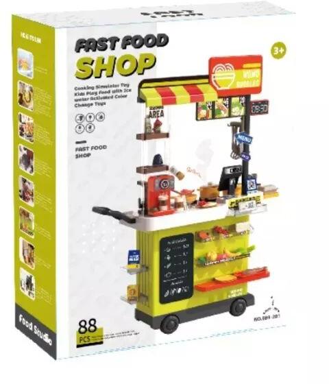 A mobil gyorsétterem játékszett, 88 db-os, kreatív szerepjáték élményt nyújt a gyermekek számára. A termék jellemzői: 88 darabos készletFejleszti a képzeletet és a kommunikációs készségeketMegismerteti a gyermekeket a főzés alapjaivalSegíthet a különböző ételek megismerésébenCsomagolás mérete: 60 x 44 x 17 cm