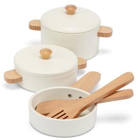 Ajándékozza meg kis séfjének a főzés örömét ezzel a gyönyörű, elegáns fehér kivitelű fa edénykészlettel.